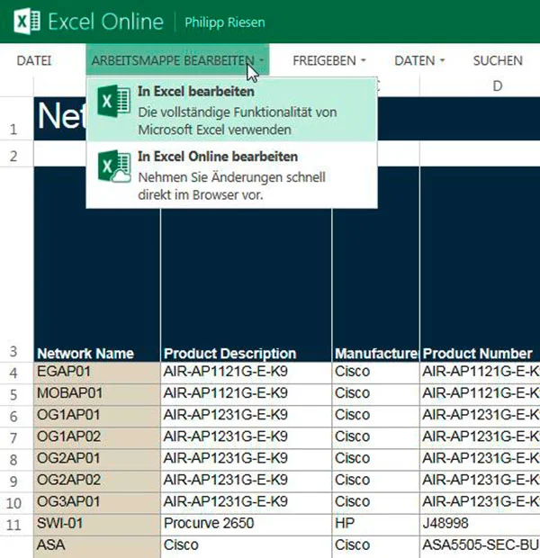 Dokumentation kann online oder direkt in Excel bearbeitet werden.